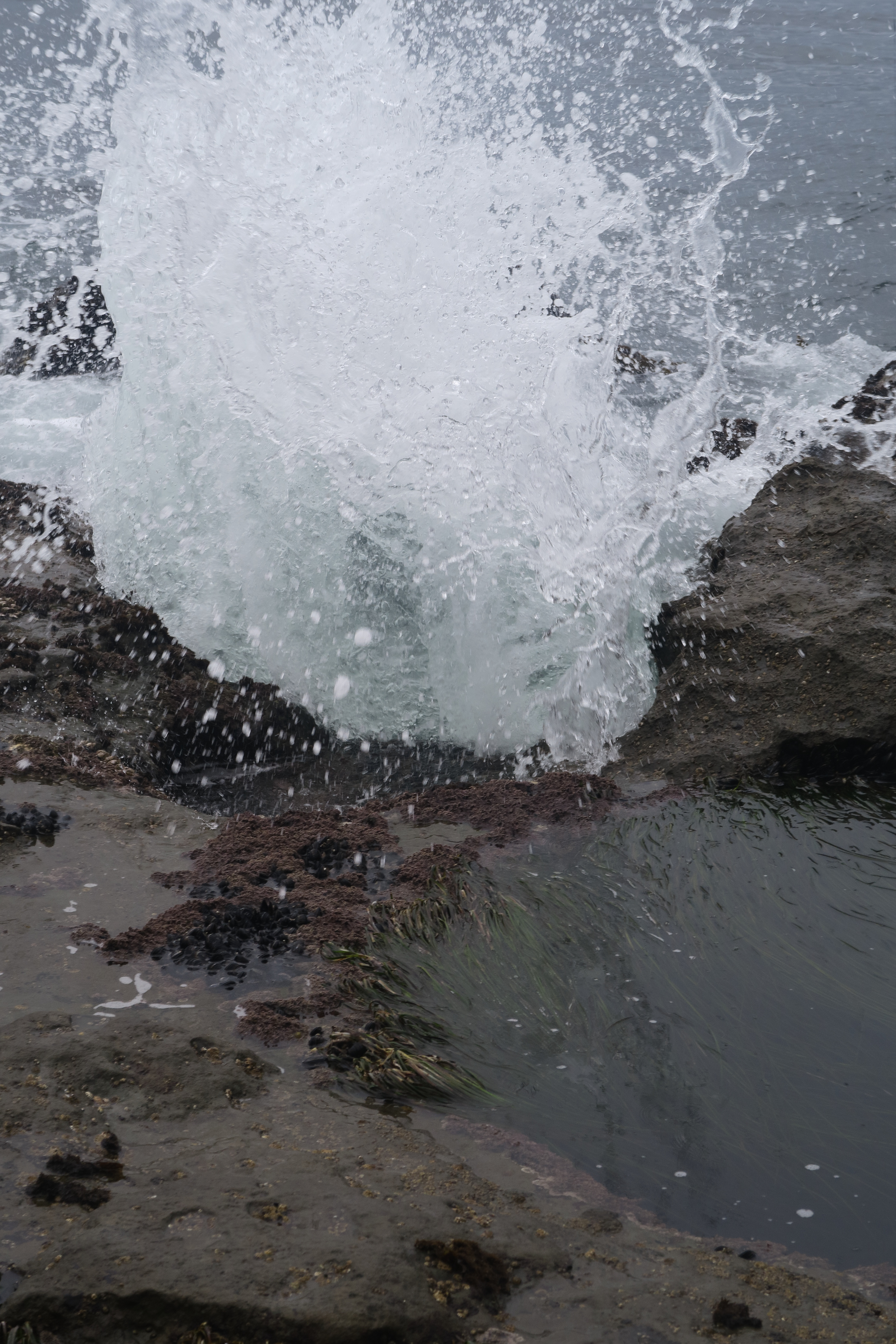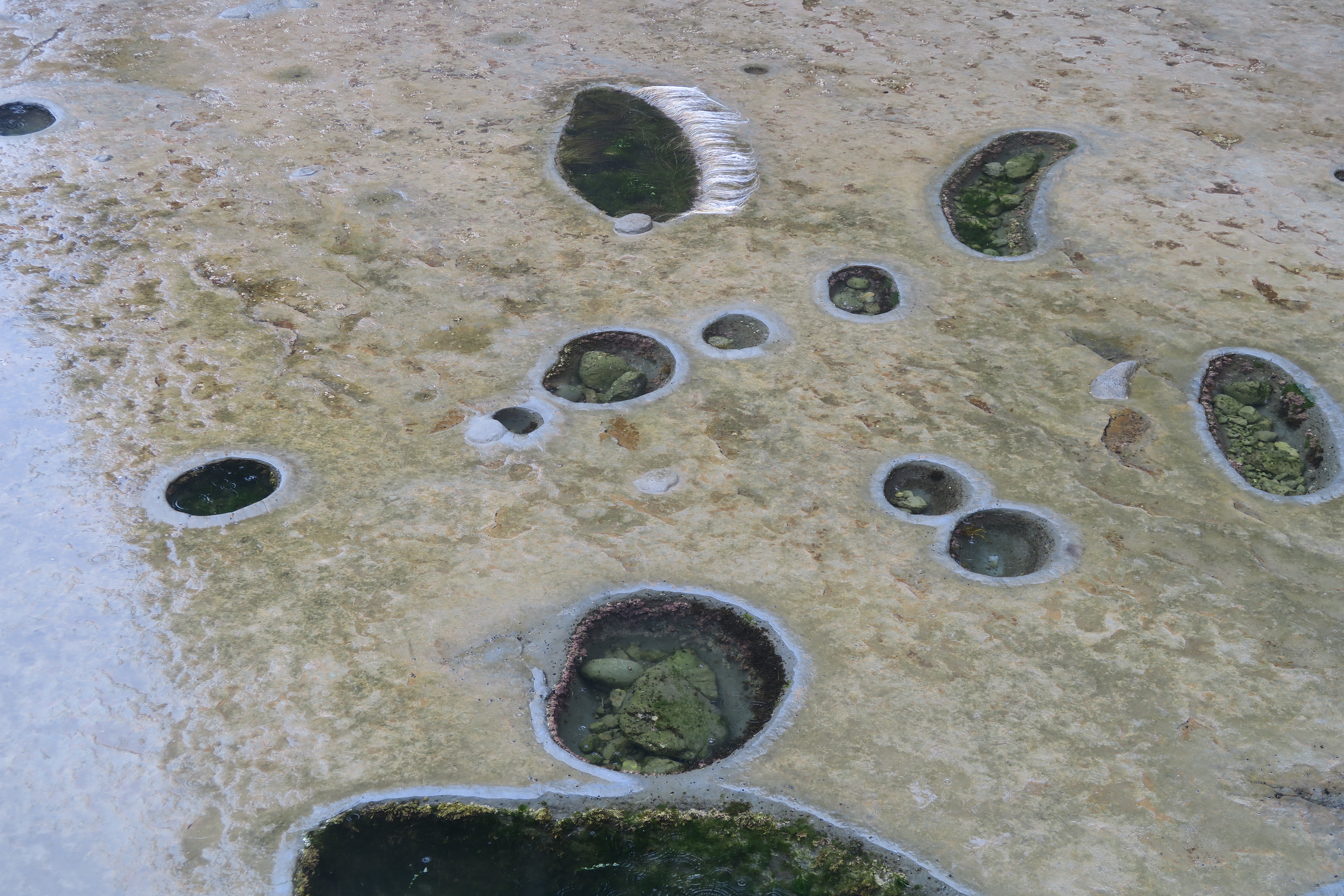 The tide pools and sculptured formations are formed out of soft sandstone. Some of the tide pools are formed by boulders grinding out pockets in the sandstone. Purple sea urchins also grind out small pockets in these tide pools.