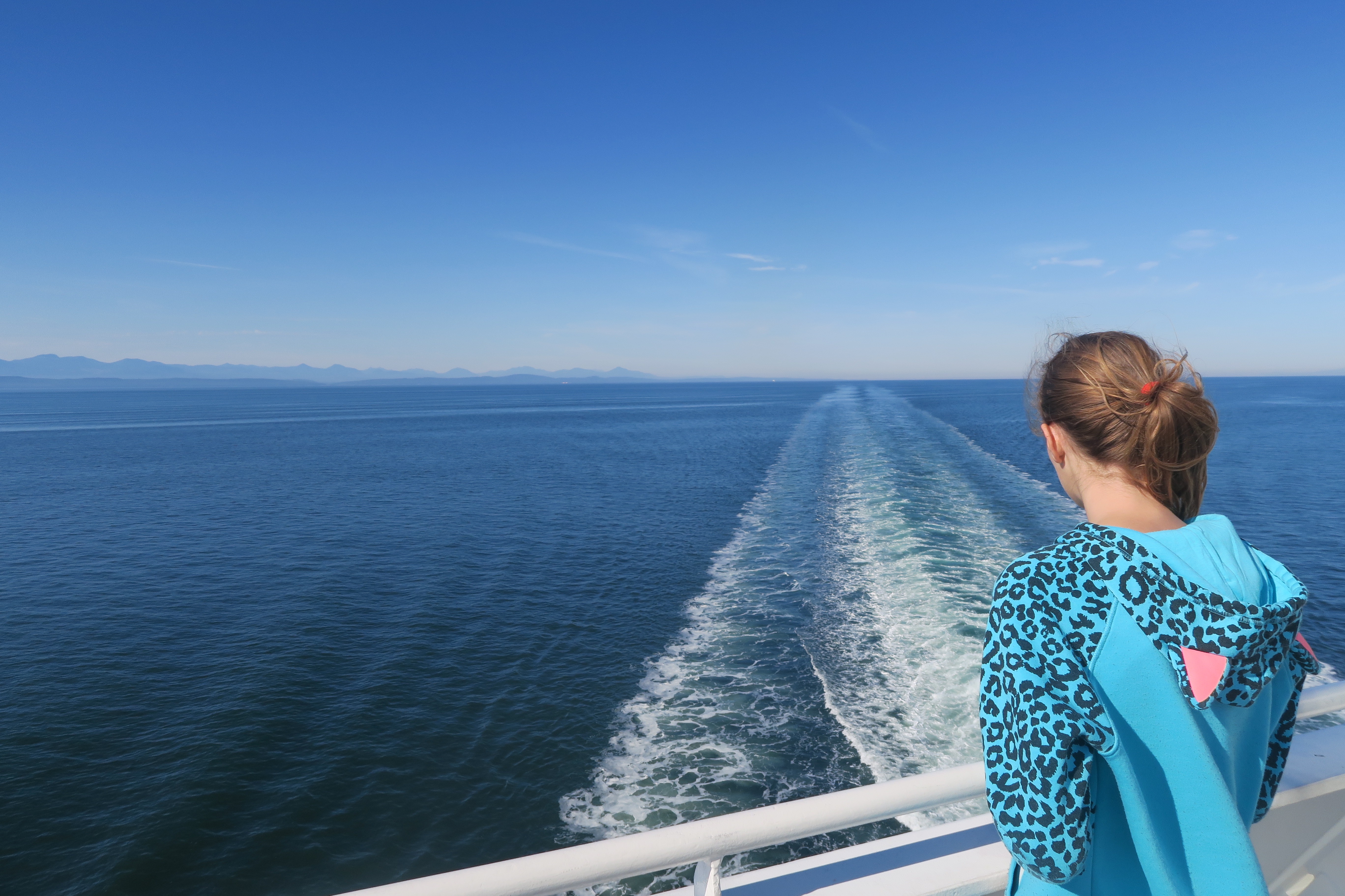 Such a beautiful day to start off our trip. We saw some orcas on route but didn’t capture them on camera unfortunately. Maddie looking back at Vancouver Island. See you in the Spring!