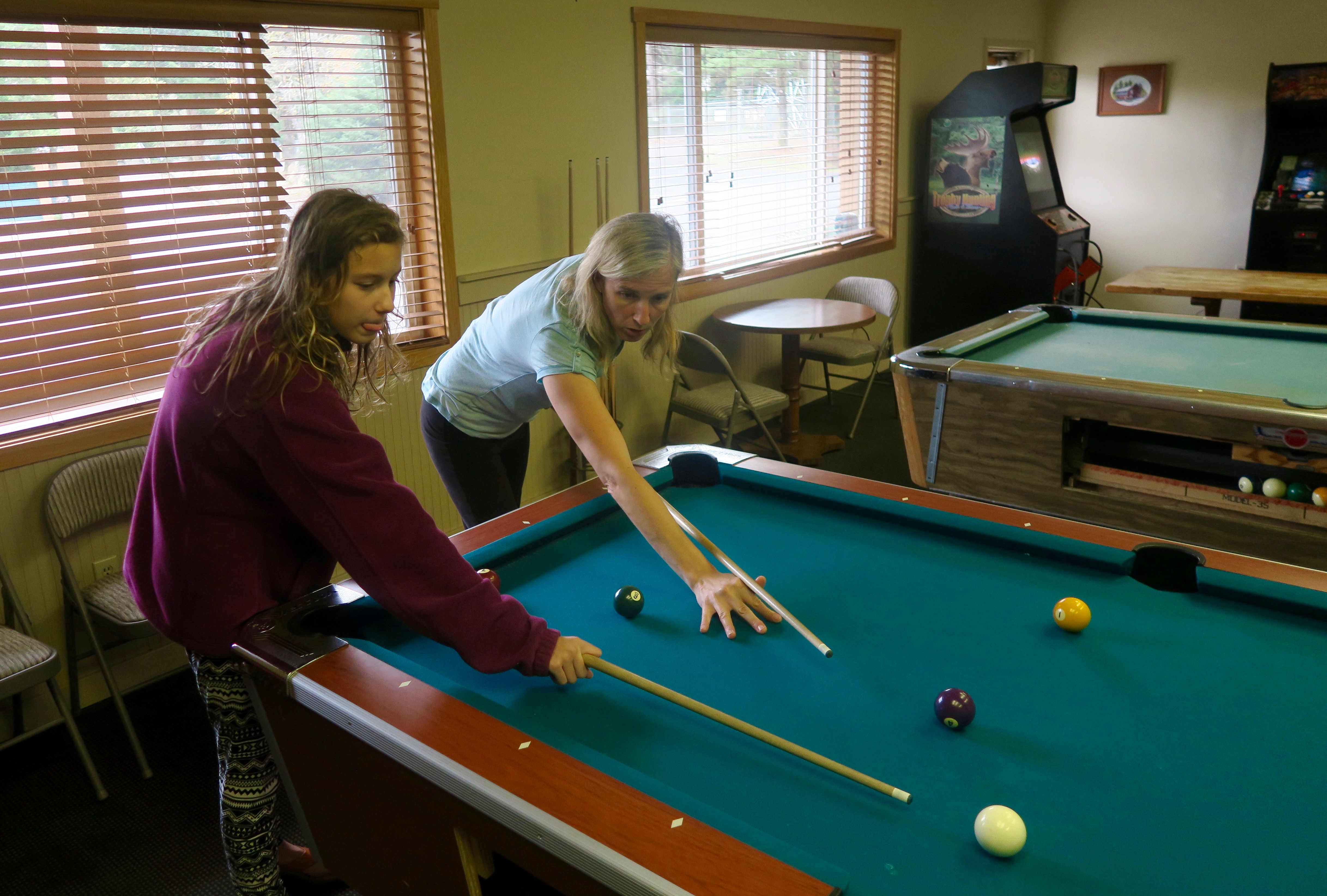 Laundry day. While we waited, we played some pool.