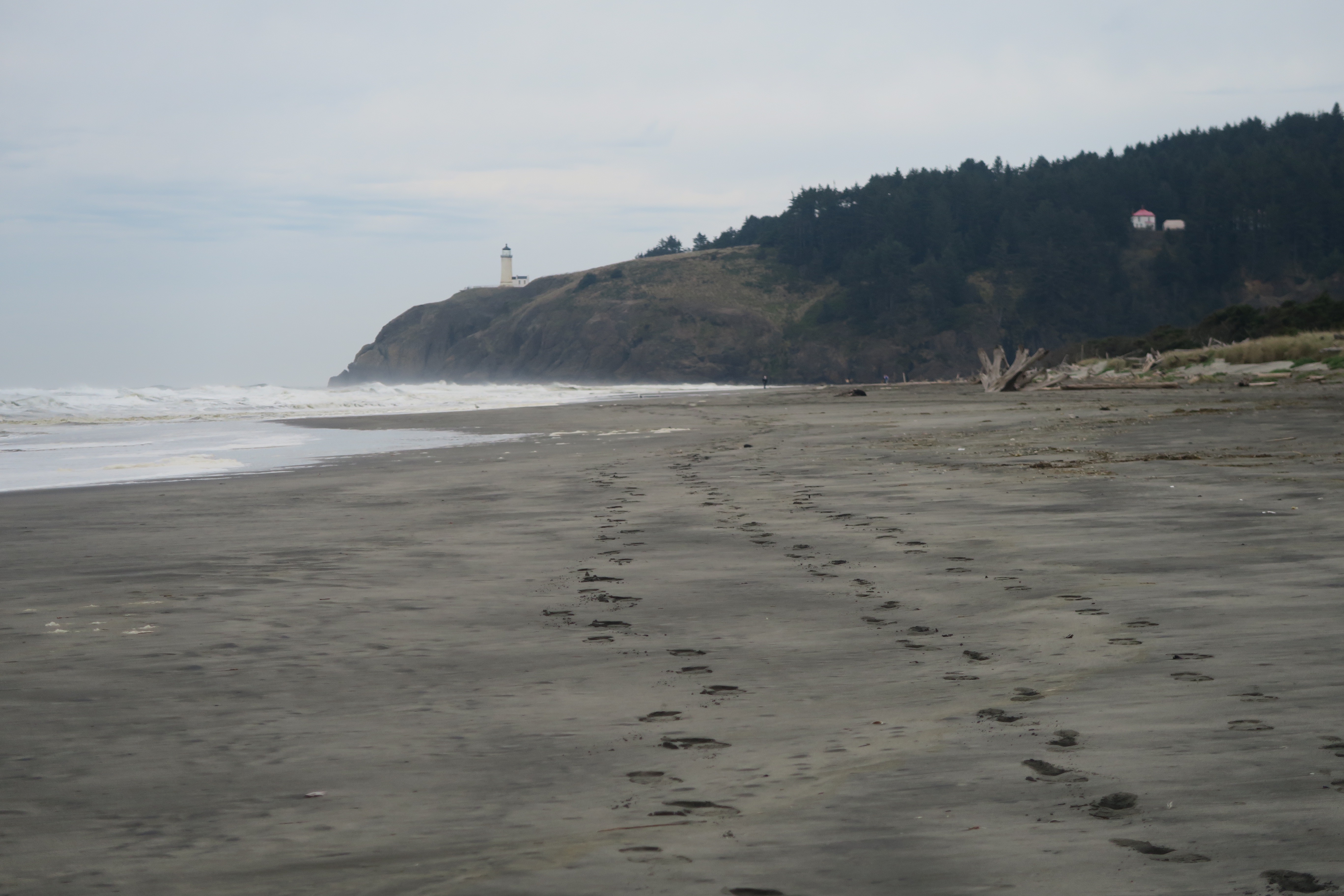 Out on the jetty, looking towards the North Head Lighthouse. We stayed at the Cape Disappointment State Park campground. Benson Beach and the campground are in the distance to the far right. The waves are insane here. This picture doesn’t portray their size or frequency. Nothing like Tofino…I can understand why we didn’t see any surfers!