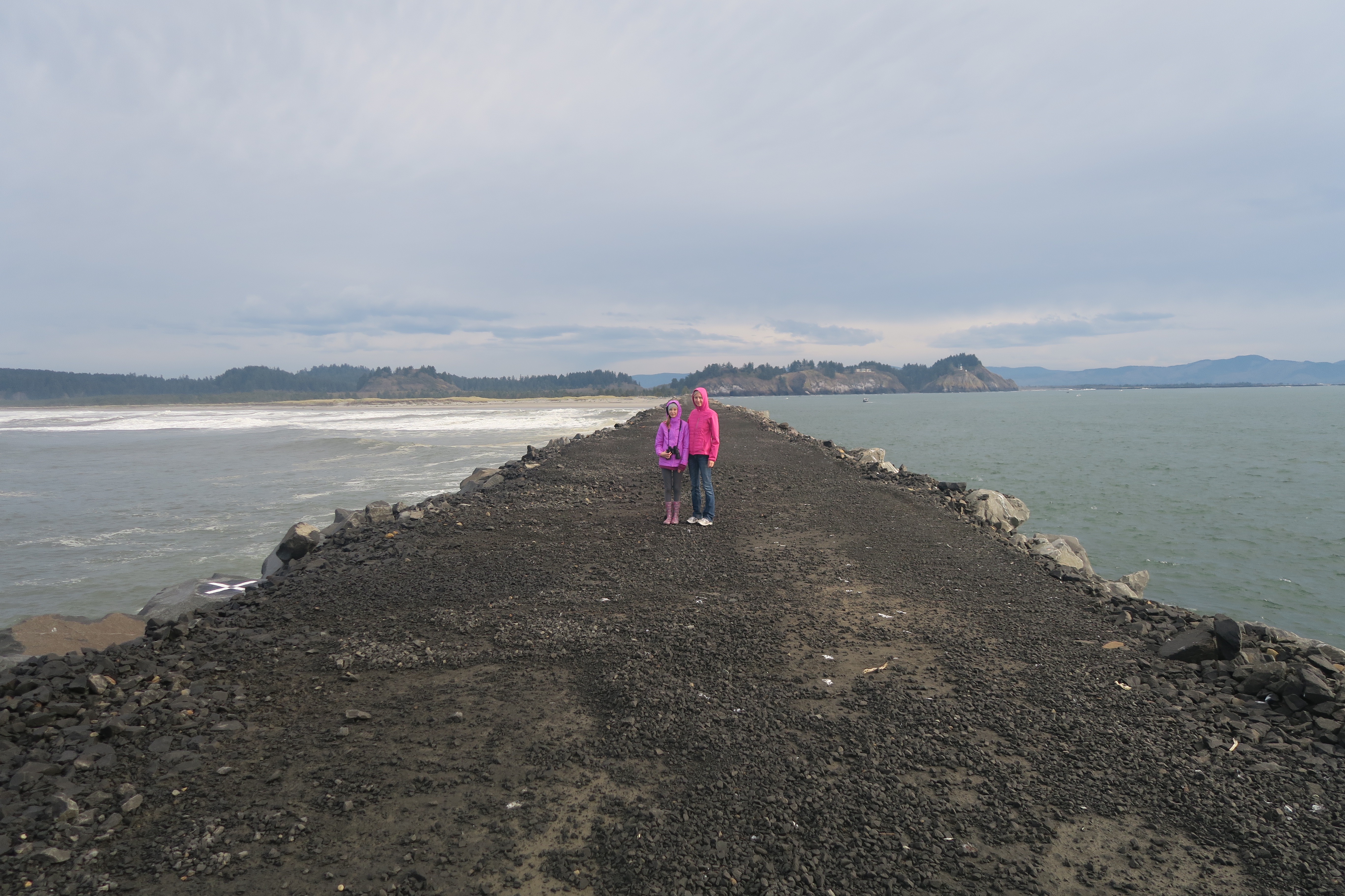 We walked out on the Northern Jetty. The confluence is to the right of this picture. Benson Beach and our campground to the left.