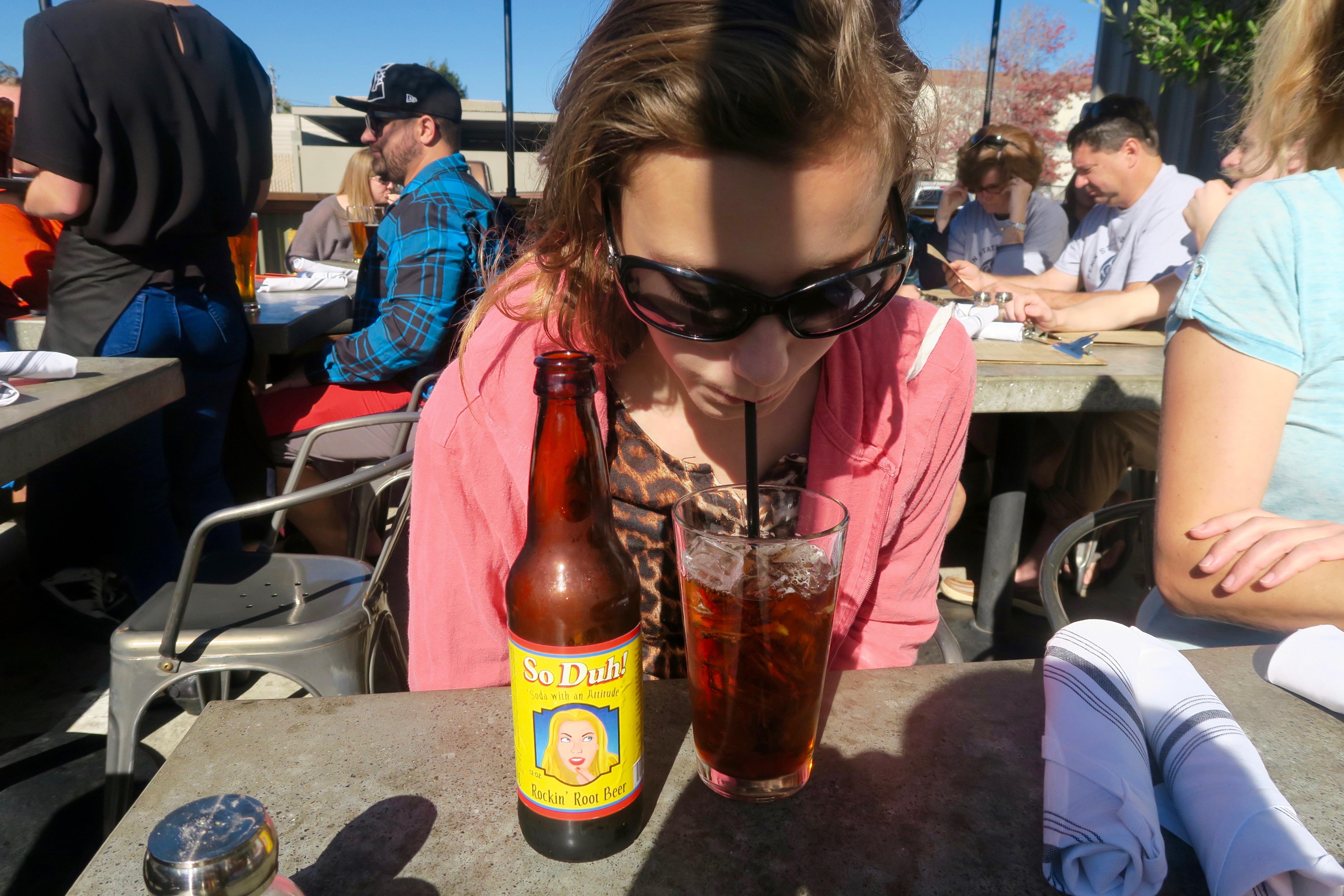 We decided it was time for some lunch. Maddie had some “So Duh!” root beer. Really unique restaurant that used to be a winery.